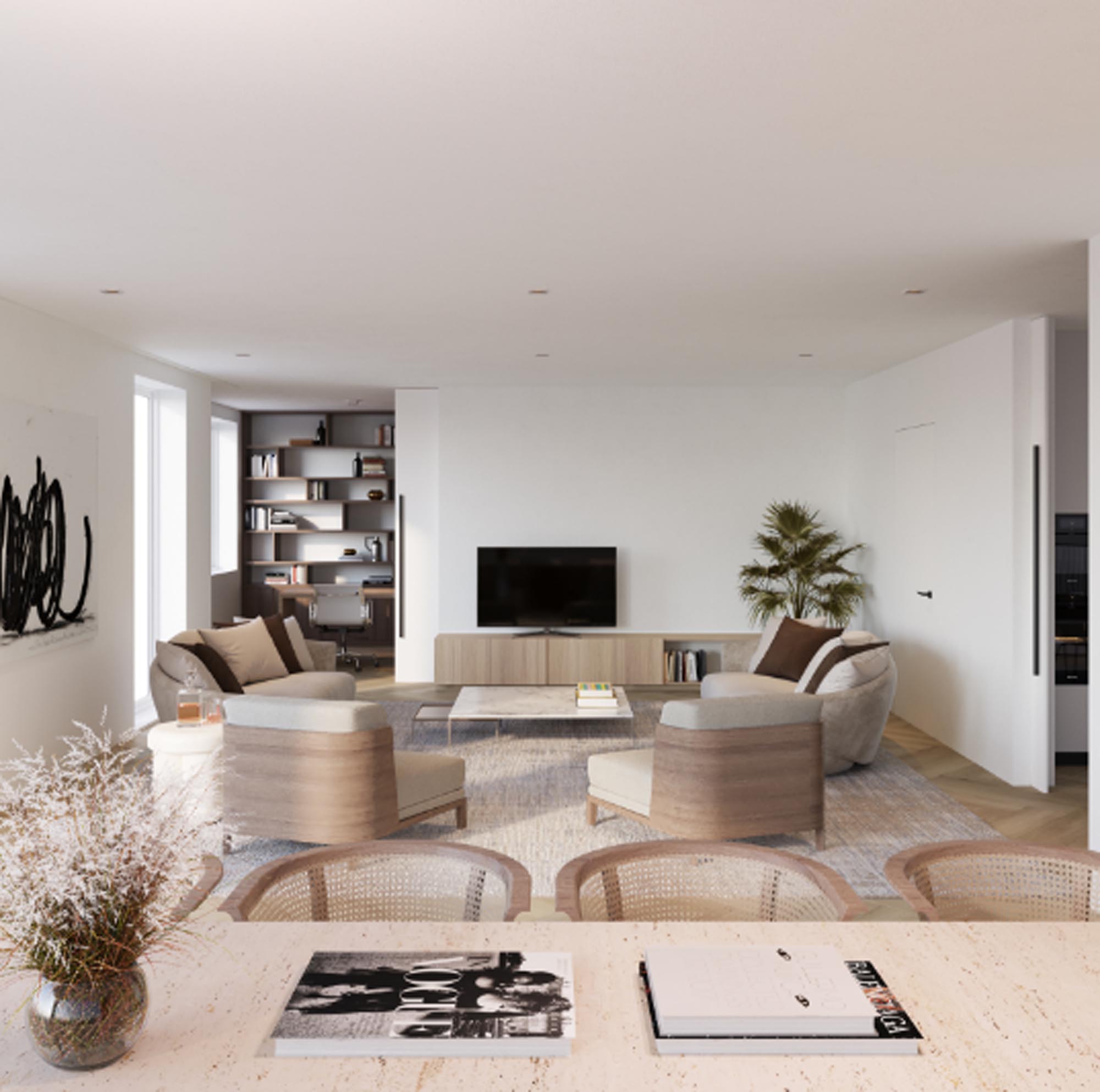 Tijdloze architectuur met stijlvolle, duurzame materialen die een moderne indruk creëren en voor een welkom en uitnodigend gevoel zorgen.