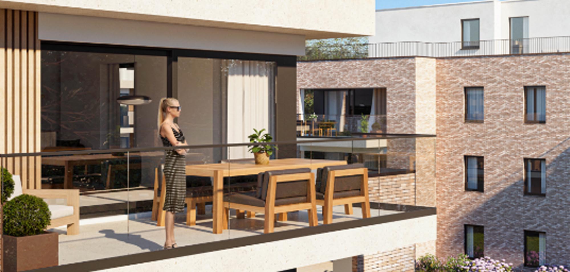 Gebouw 322 heeft op het eerste en tweede verdiep vier prachtige hoekappartementen met ruime terrassen.